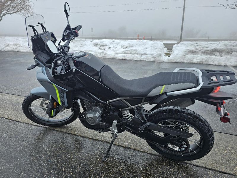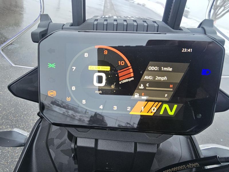• ADDITIONAL FEATURES: LED headlights, taillights, and signal lights; 5” TFT display withBluetooth and CFMOTO RideSync connectivity, Standard and Off-road ride modes, one-touch ABS shutoff, rear wheel traction control shutoff,on the fly adjustable windscreen, foldable mirrors, USB port, type-C