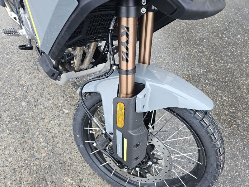 Some would even say it’s a unicorn. Under the tank sings a 270° parallel twin—chosen not for parallel twin bragging rights, but for the torque curve real-world ADV riding demands. Twin counterbalancers keep it smooth without muting the feel. The fully adjustable KYB suspension with 200mm of travel interprets the terrain. Tubeless spoke wheels, a Chromoly steel frame, and plenty of ground clearance round out the platform. J.Juan brakes and one-touch, switchable Bosch® ABS instill confidence on all surfaces. And at 386 pounds dry, it’s one of the only ADV bikes that feels more like a riding partner than a machine.