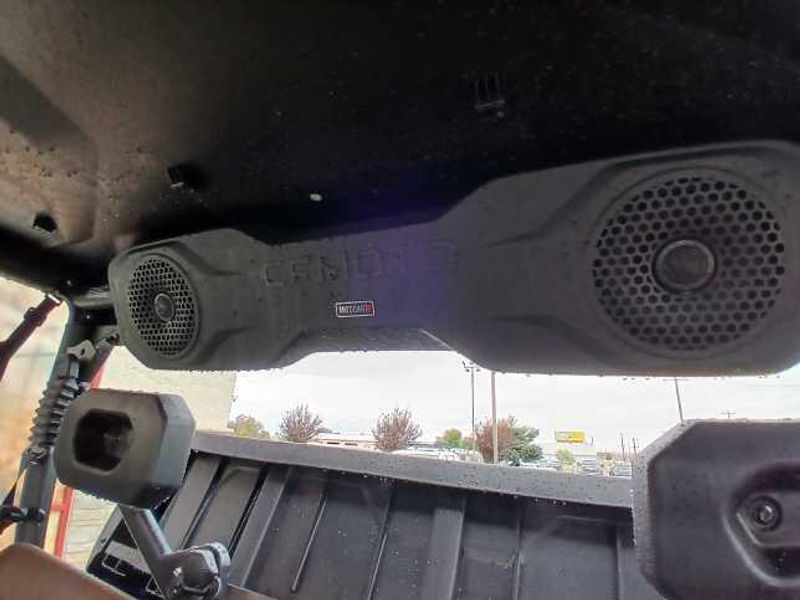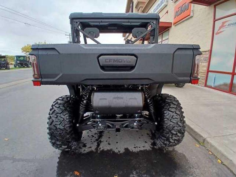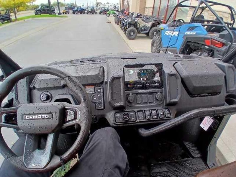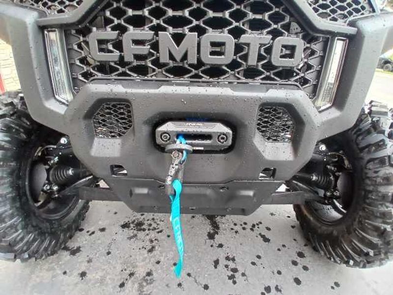 • ADDITIONAL FEATURES: Electronic power steering, Bosch® electronic throttle with work/normal modes, 4500 lb. winch with synthetic rope, 3-person bench seats, side nets, CFMOTO LED™ headlights/taillights with backup lights, tilt steering wheel, CFMOTO RideSync app compatible (T-Box), 12V outlet, USB port, push button shifting, nfc key, 8” CFMOTO RideSync™ touch screen display, electronic / hydraulic tilt bed, skid plate, front & rear sway bars, Hill Descent Control, locking rear differential, side rear view mirrors, roof, bus bar, 2” receiver, adjustable driver's and passenger's seats, audio package