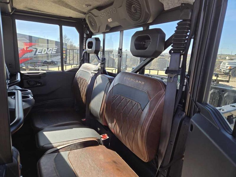 • High-End Interior: The Highland’s interior delivers the sophistication of a luxury SUV, paired with the durability expected in a rugged UTV. The premium interior provides seating for six passengers. High-quality materials and precision stitching endure the harshest conditions. A sound-dampening headliner minimizes cabin noise, ensuring a quieter, more comfortable ride.