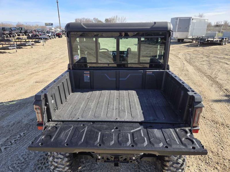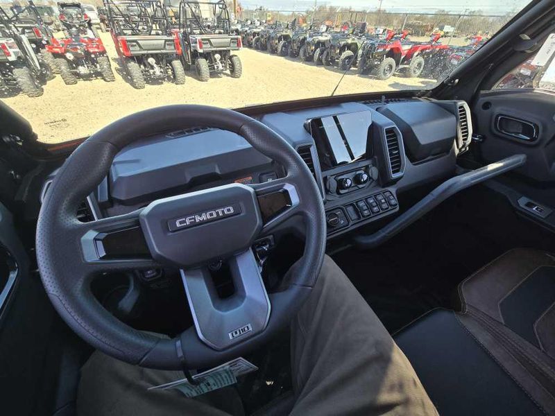• ADDITIONAL FEATURES: Electronic power steering, Bosch® EFI, electronic throttle with work/normal modes, OmniDrive™ CVT, 4500 lb. winch with synthetic rope, two 3-person bench seats, CFMOTO LED™ headlights/taillights with backup lights, tilt steering wheel, CFMOTO RideSync app compatible (T-Box), 12V outlet, USB port, push button shifting and starting, nfc key, 8” CFMOTO RideSync™ touchscreen display, electronic / hydraulic tilt bed, skid plate, front & rear sway bars, Hill Descent Control, locking front and rear differential, side rear view mirrors, roof with headliner, bus bar, 2” receiver, adjustable driver seat, audio package, power glass tip out windshield with wiper, sliding rear glass window, full locking doors with power glass windows, factory installed HVAC, 150amp charging system