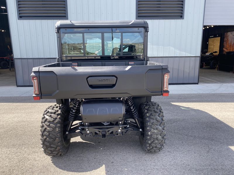 • ADDITIONAL FEATURES: Electronic power steering, Bosch® EFI, electronic throttle with work/normal modes, OmniDrive™ CVT, 4500 lb. winch with synthetic rope, two 3-person bench seats, CFMOTO LED™ headlights/taillights with backup lights, tilt steering wheel, CFMOTO RideSync app compatible (T-Box), 12V outlet, USB port, push button shifting and starting, nfc key, 8” CFMOTO RideSync™ touchscreen display, electronic / hydraulic tilt bed, skid plate, front & rear sway bars, Hill Descent Control, locking front and rear differential, side rear view mirrors, roof with headliner, bus bar, 2” receiver, adjustable driver seat, audio package, power glass tip out windshield with wiper, sliding rear glass window, full locking doors with power glass windows, factory installed HVAC, 150amp charging system