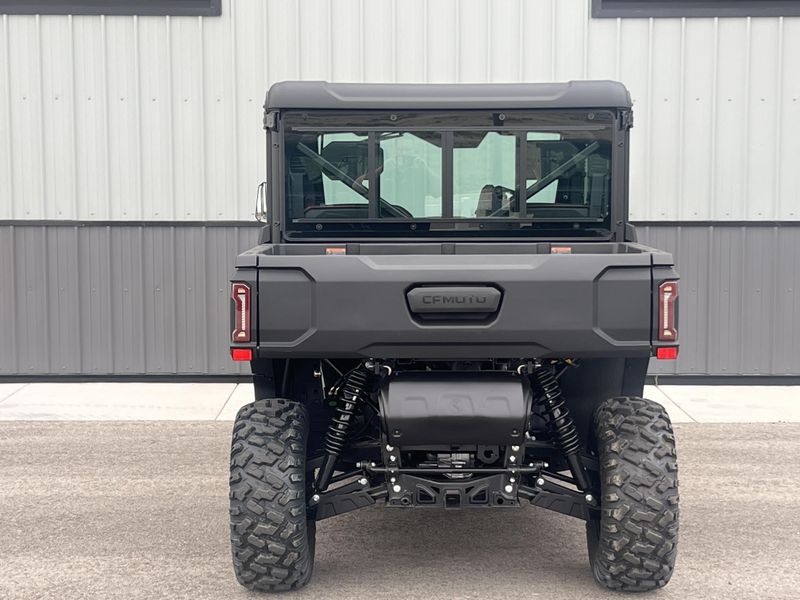 • ADDITIONAL FEATURES: Electronic power steering, Bosch® EFI, electronic throttle with work/normal modes, OmniDrive™ CVT, 4500 lb. winch with synthetic rope, two 3-person bench seats, CFMOTO LED™ headlights/taillights with backup lights, tilt steering wheel, CFMOTO RideSync app compatible (T-Box), 12V outlet, USB port, push button shifting and starting, nfc key, 8” CFMOTO RideSync™ touchscreen display, electronic / hydraulic tilt bed, skid plate, front & rear sway bars, Hill Descent Control, locking front and rear differential, side rear view mirrors, roof with headliner, bus bar, 2” receiver, adjustable driver seat, audio package, power glass tip out windshield with wiper, sliding rear glass window, full locking doors with power glass windows, factory installed HVAC, 150amp charging system