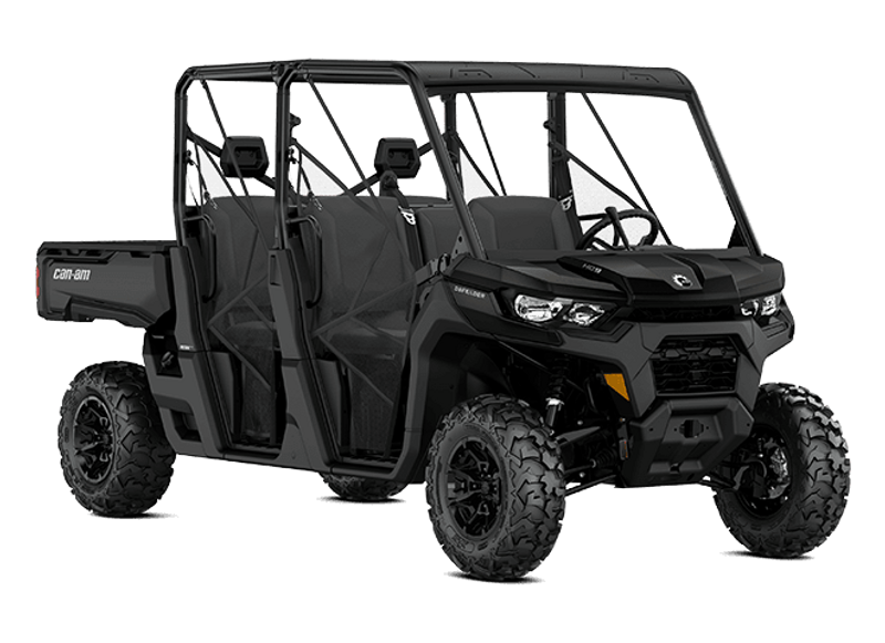 DO IT ALL (AND THEN SOME). Defender MAX is well-equipped from standard to tackle your jobs. Room for 6, 4WD, 1-year warranty, and a punchy Rotax® powertrain. And it's a six-seater that doesn't compromise on turning radius.
