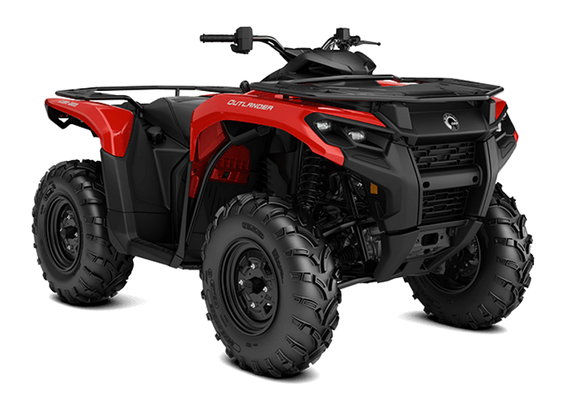 HANDLE THE WORST WITH EASE. Built to work, made for adventure, and priced to win. The Outlander 500/700 delivers Can-Am strength for trails, hauling, and more. Go farther, do more, and power through every mile. Versatile, comfortable, and built for laid-back exploration. Our recreational ATVs are your go-to for trail rides, outdoor escapes, and everyday adventures. Versatile, comfortable, and built for laid-back exploration. Our recreational ATVs are your go-to for trail rides, outdoor escapes, and everyday adventures. Dynamic Power Steering (DPS) improves comfort and steering feel everywhere: from tight turns to challenging trails. The Outlander 500/700 gives you a better built, better performing, more durable ATV than any to ever come before it--all at a price that even saves you more. It's the new leader in Off-Road Livin'. HIGHLIGHTS: • Tri-Mode Dynamic Power Steering (DPS) • Visco-Lok† QE auto-locking front differential • 25 in. tires with 12 in. steel wheels • Full skid plate COMPROMISE NOTHING The new Outlander 500/700 offers better build quality with more feature and accessories. That means being able to add everything you need for any adventure life throws your way, all at our lowest price ever. GO AHEAD AND GET COMFORTABLE. An ATV made to ride. The Rotax engines vibrate less and have rear-facing exhausts, so there's less heat build-up. Better stability and the best ground clearance mean you've never hit the trails with more comfort. STORAGE TO TAKE IT ALL With more storage options than ever, the Outlander makes sure you're ready for anything. From waterproof front storage and a rear rack platform to an all-new 1 gal (4 L) glovebox with a mobile phone safety mount and charger, you'll have the space for whatever equipment the journey demands. SMOOTHER SHIFTING The Outlander 500/700 includes our pDrive clutch. It's the lowest maintenance, quickest down-shifting, smoothest shifting, most durable clutch ever. Time to go get some! NO TERRAIN IS OFF LIMITS The Outlander 500/700 features Rotax engines, each designed with a twin cam and balancer shaft. Plus, the engines have been angled towards the rear for better airflow and heat dissipation, so the ride is more comfortable. Let's go get covered in mud. COLOR OPTIONS: • Granite Gray • Legion Red • Wildland Camo - MSRP Starting at $8,949 FACTORY WARRANTY: • 6-month BRP limited warranty © 2026 Bombardier Recreational Products Inc (BRP). All rights reserved. ®, TM, and the BRP logo are registered trademarks of Bombardier Recreational Products Inc. or its affiliates. In the U.S.A., the products are distributed by BRP US Inc. † Visco-Lok is a trademark of GKN Viscodrive GmbH. All other trademarks are the property of their respective owners. For other jurisdictions, see your local dealer. Because of our ongoing commitment to product quality and innovation, BRP reserves the right at any time to discontinue or change specifications, price, design, features, models, or equipment without incurring any obligation. Ride responsibly. BRP highly recommends that all ATV drivers take a training course. For safety and training information, see your dealer or, in the U.S.A. call the ATV Safety Institute at 1 (800) 887-2887. ATVs can be hazardous to operate. For your safety: the operator and passenger should wear a helmet, eye protection, and other protective clothing. Always remember that riding and alcohol/drugs don't mix. Never ride on paved surfaces or public roads. Never engage in stunt driving. Avoid excessive speeds and be particularly careful on difficult terrain. ATVs with engine sizes of greater than 90cc are recommended for use only by those age 16 and older. Never carry passengers on any ATV not specifically designated for such use.