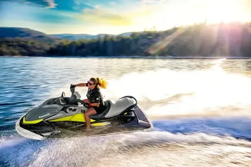 KAWASAKI CARES: Ride responsibly. Kawasaki believes safety begins with us and continues with you. Always wear a USCG-approved personal flotation device, eyewear, gloves, footwear, and a wet suit or clothing that provides equivalent protection (board shorts with neoprene liner). Never ride under the influence of drugs or alcohol. Respect the rights of shoreline residents and other marine recreationists. Boat smart from the start. Take a Boating Safety course; for more information visit www.USCGBoating.org. Jet Ski watercraft are inboard powerboats and their use is subject to all applicable federal, state, and local boating laws. Read Owner's Manual and all on-product warnings. ©2026 Kawasaki Motors Corp., U.S.A.