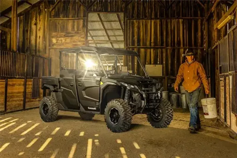 KAWASAKI CARES: Read the Owner's Manual and all on-product warnings. Always wear protective gear appropriate for the use of this vehicle. Never operate under the influence of drugs or alcohol. Protect the environment. The Kawasaki side x side is an off-highway vehicle only and is not designed, equipped, or manufactured for use on public streets, roads, or highways. Obey the laws and regulations that control the use of your vehicle. ©2026 Kawasaki Motors Corp., U.S.A.