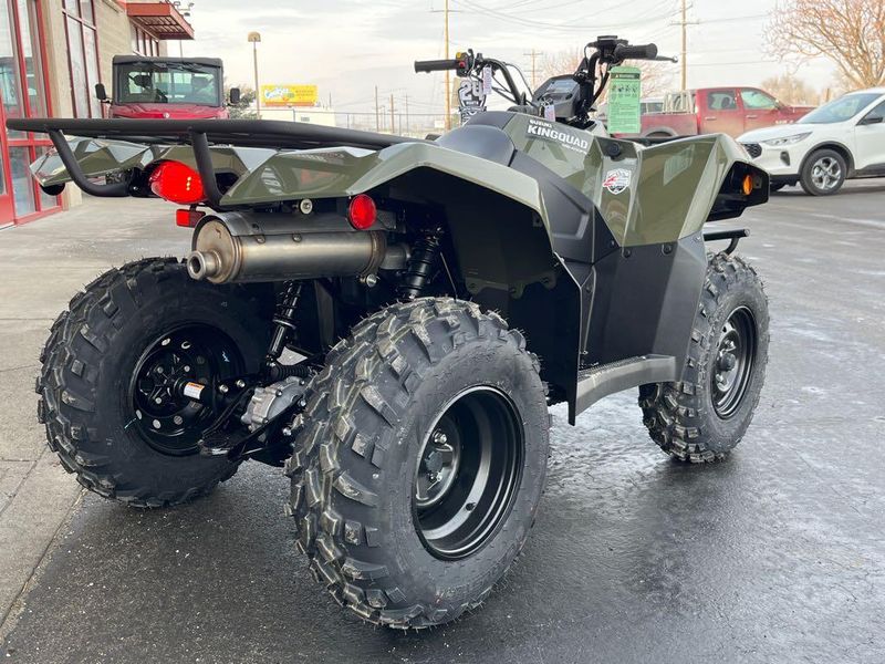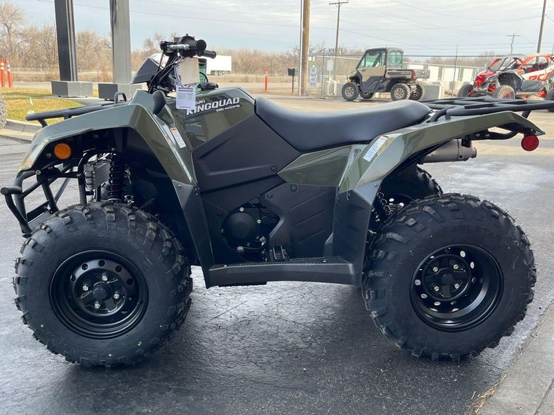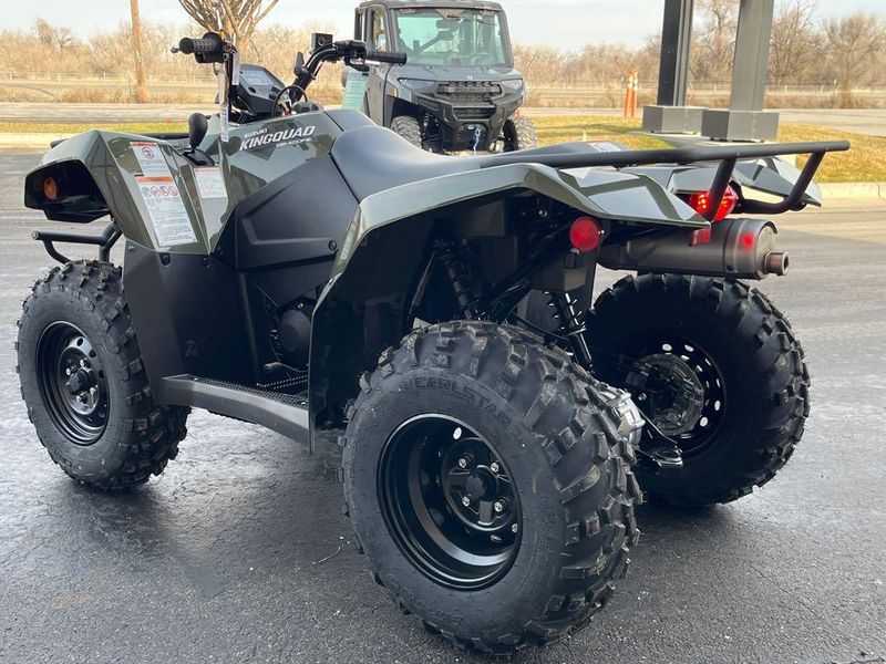 In 1982, Suzuki introduced the world's first 4-wheel ATV. Today, Suzuki ATVs are everywhere. From the most remote areas to the most everyday tasks, you will find the KingQuad powering a rider onward. Across the board, our KingQuad lineup is an exceptional group of ATVs. For riders who favor a sportier performance, the 2026 Suzuki KingQuad 400FSi features a five-speed manual-shift transmission and semi-automatic clutch. This engine is always willing as it cranks out an impressive amount of torque and has an incredibly wide powerband for exceptional performance on the trail or on the job. A high-performance iridium spark plug and refined Pulsed-secondary AIR-injection (PAIR) system help provide outstanding fuel efficiency, clean emissions, and impressive performance.